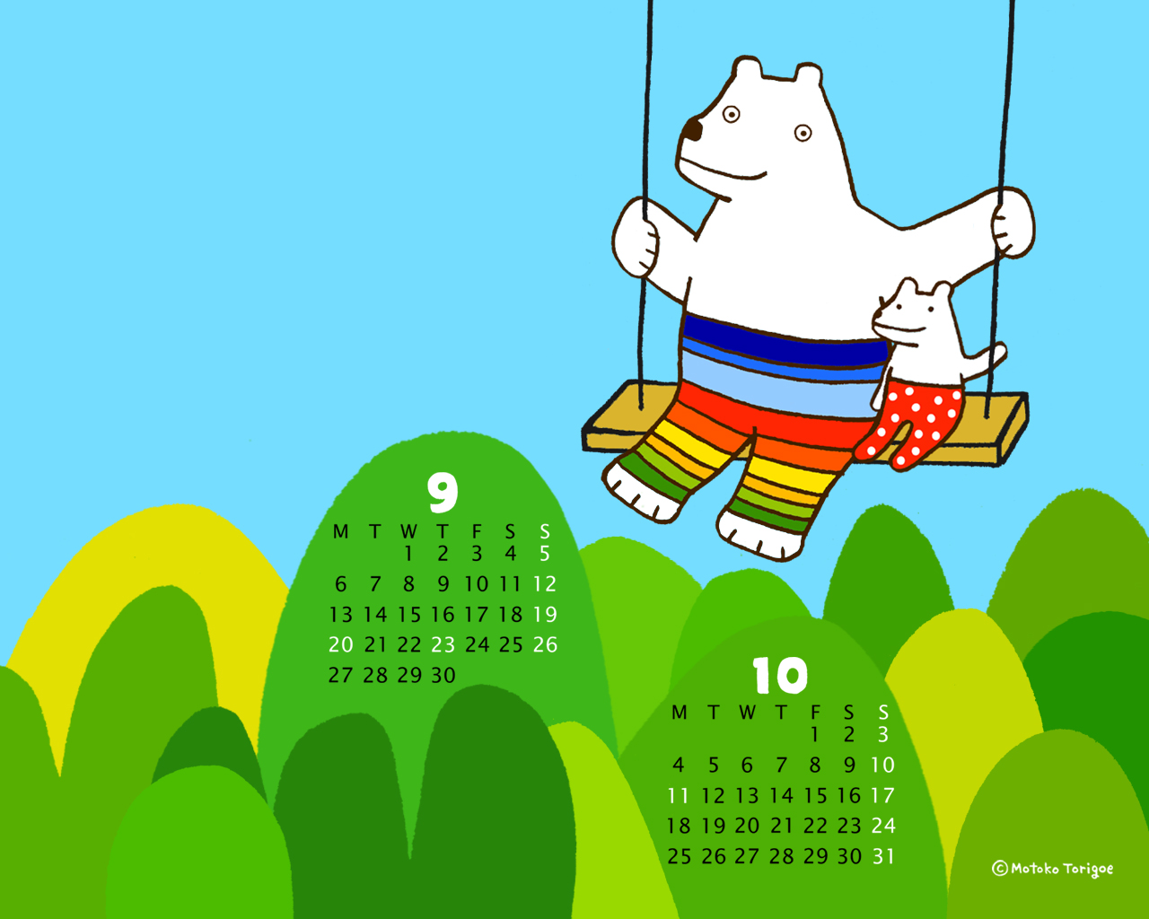 2010年9月10月カレンダーつきイラスト壁紙その1です(1280×1024)