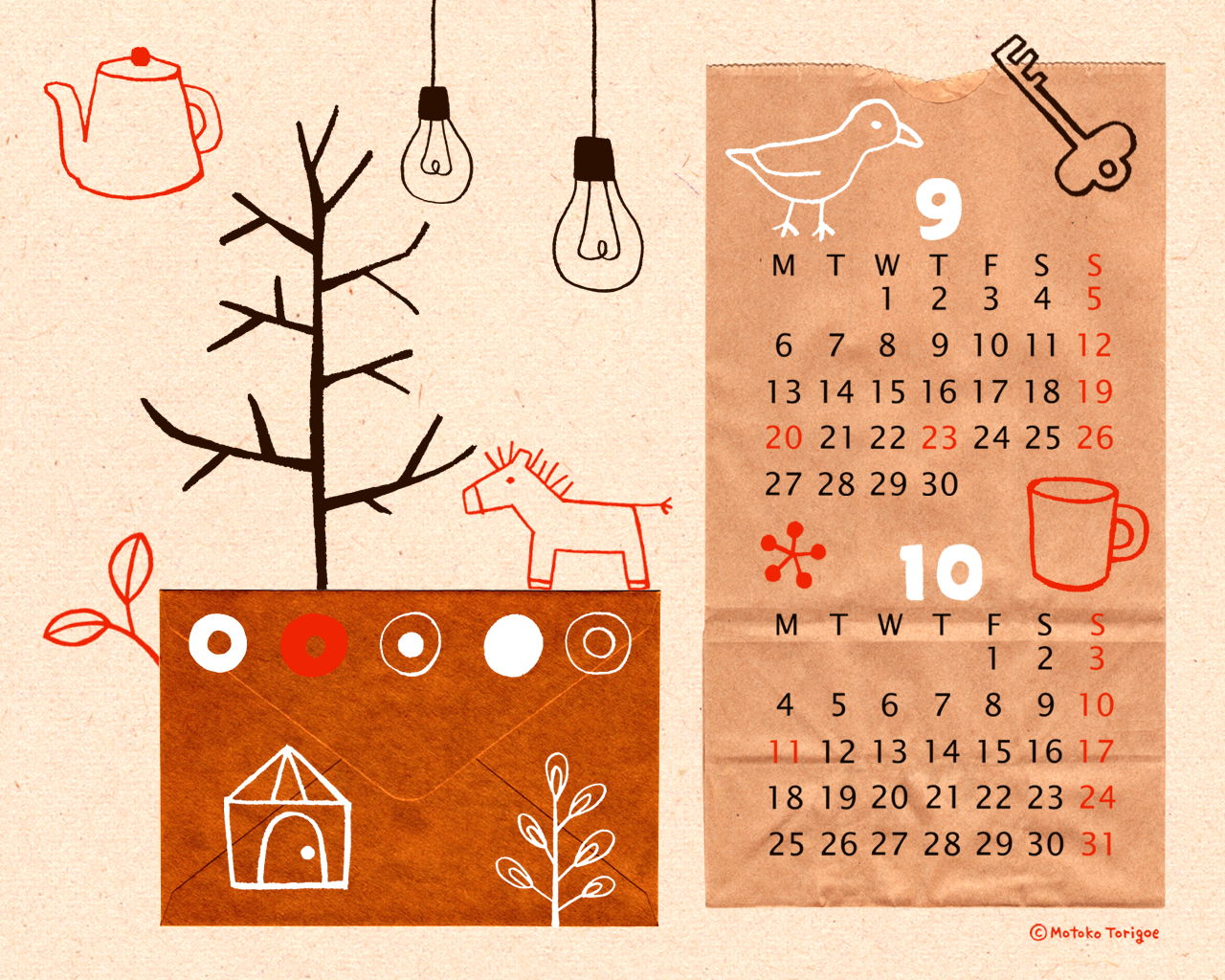 2010年9月10月カレンダーつきイラスト壁紙その2です(1280×1024)
