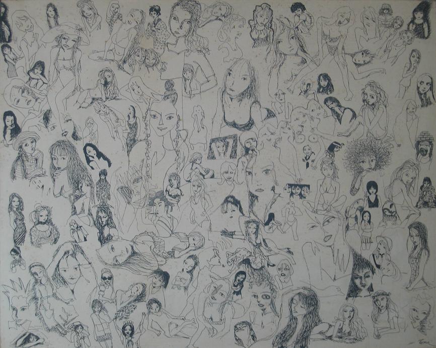 F30号キャンバスに製図用のロットリングペンで描いた。