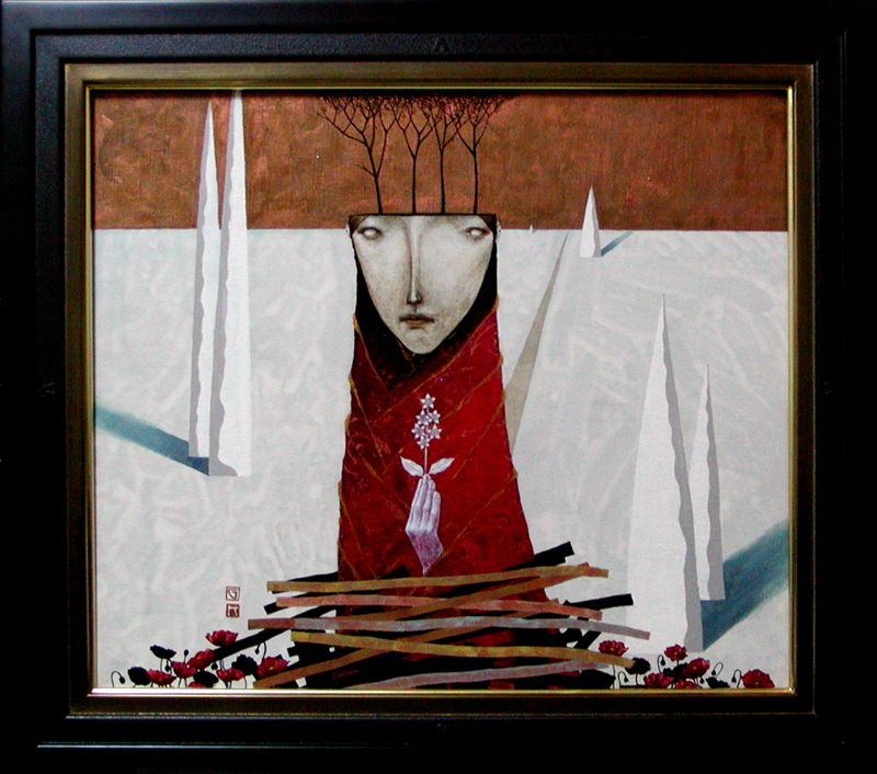 F10号のキャンバスにアクリル絵の具、及びアクリルガッシュ。
