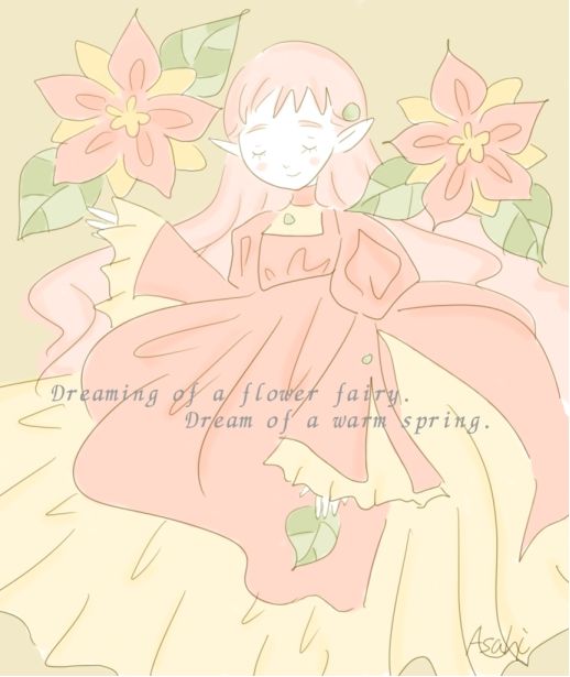 温かな春の夢を見ている花の妖精ちゃんです。