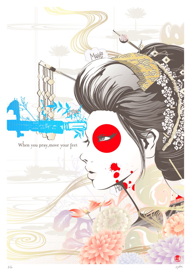 ■ 2008 ベジェ曲線(illustrator CS2)、ジークレー、版上面に手彩