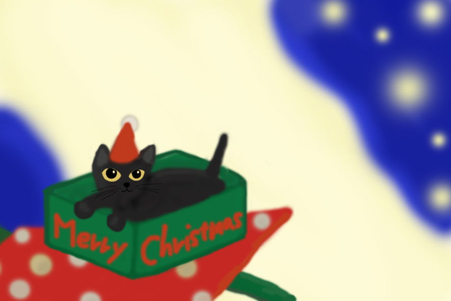 箱が好きな黒猫のクリスマスカード_メッセージ用