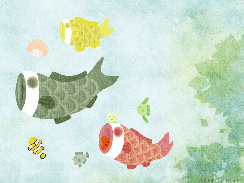 こいのぼりと一緒に 1024x768
