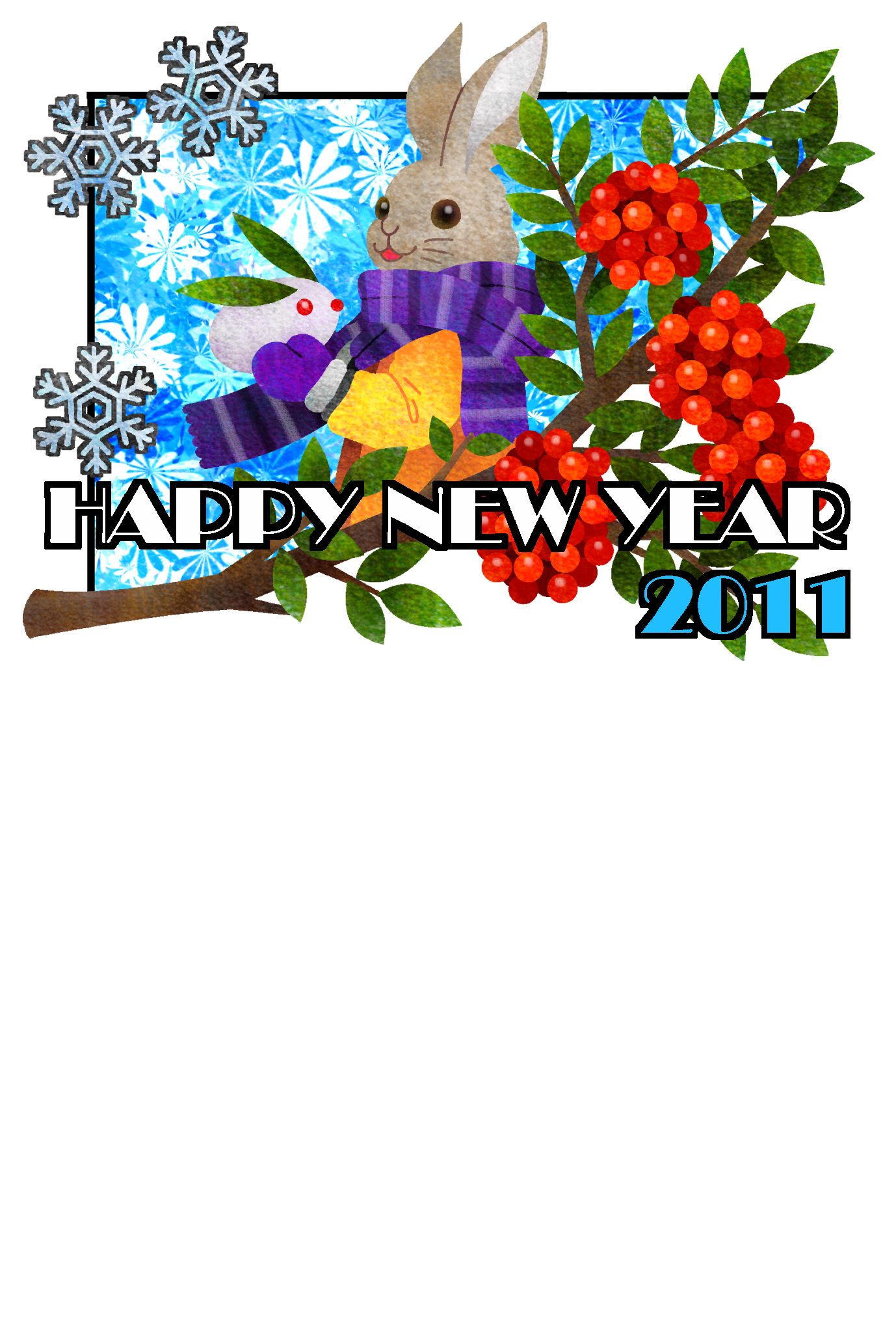 雪ウサギと南天(2011年卯年年賀状用フリー素材)