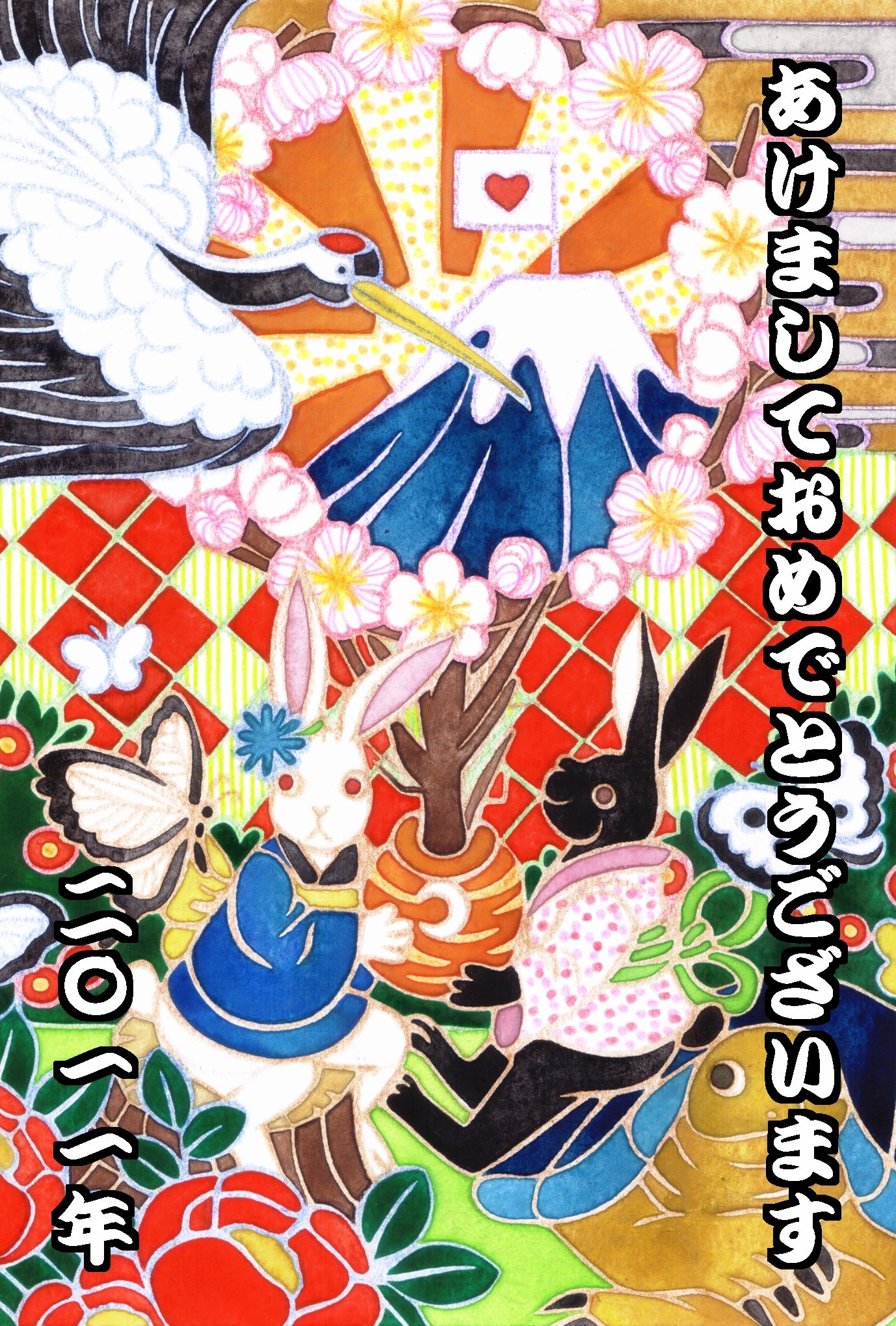 カラフル和風(2011年卯年年賀状用フリー素材)