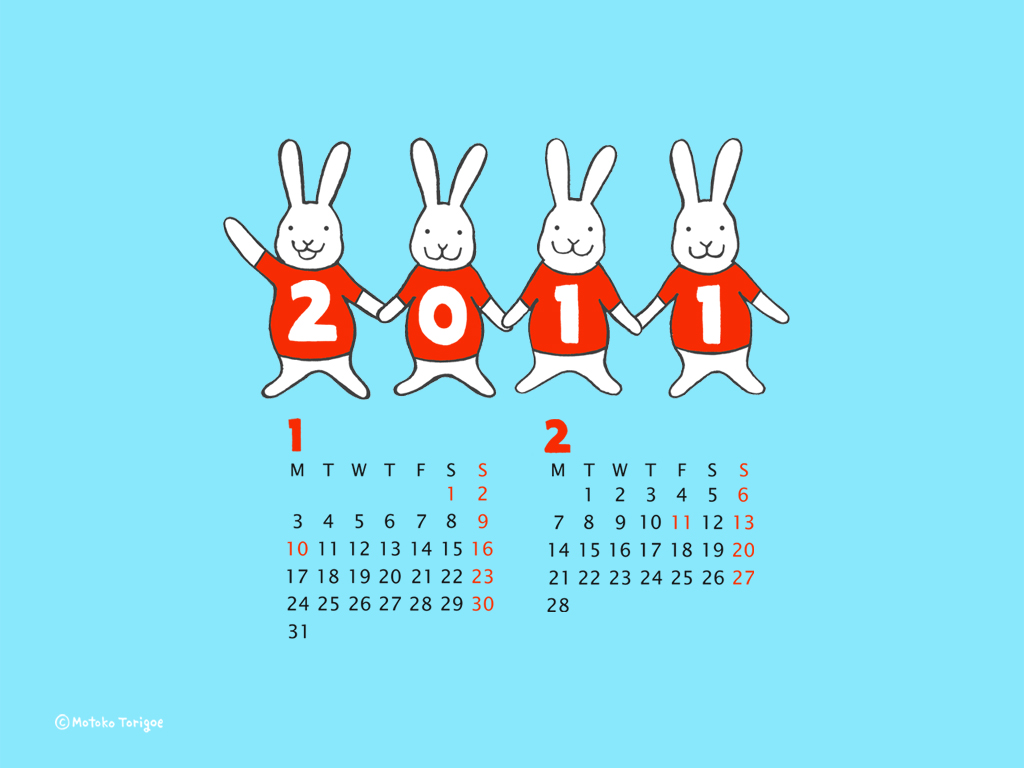*2011年1月2月カレンダーつきイラスト壁紙その2です(1024×768)*