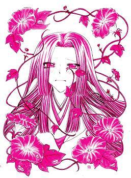 マゼンダのインクだけで着色。全く同じ線画のシアンバージョンと比べて、今にも崩れそうな、かよわい感じの女の子になったと思います。同じ線画なのに…何故でしょう… 色のイメージ??でしょうか…;;