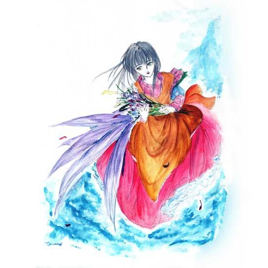 油彩色鉛筆・顔彩・青墨