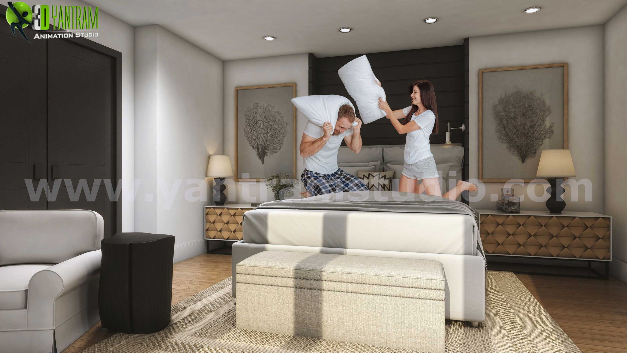 3Dインテリアモデリングで開発された建築用ベッドルームデザイン
