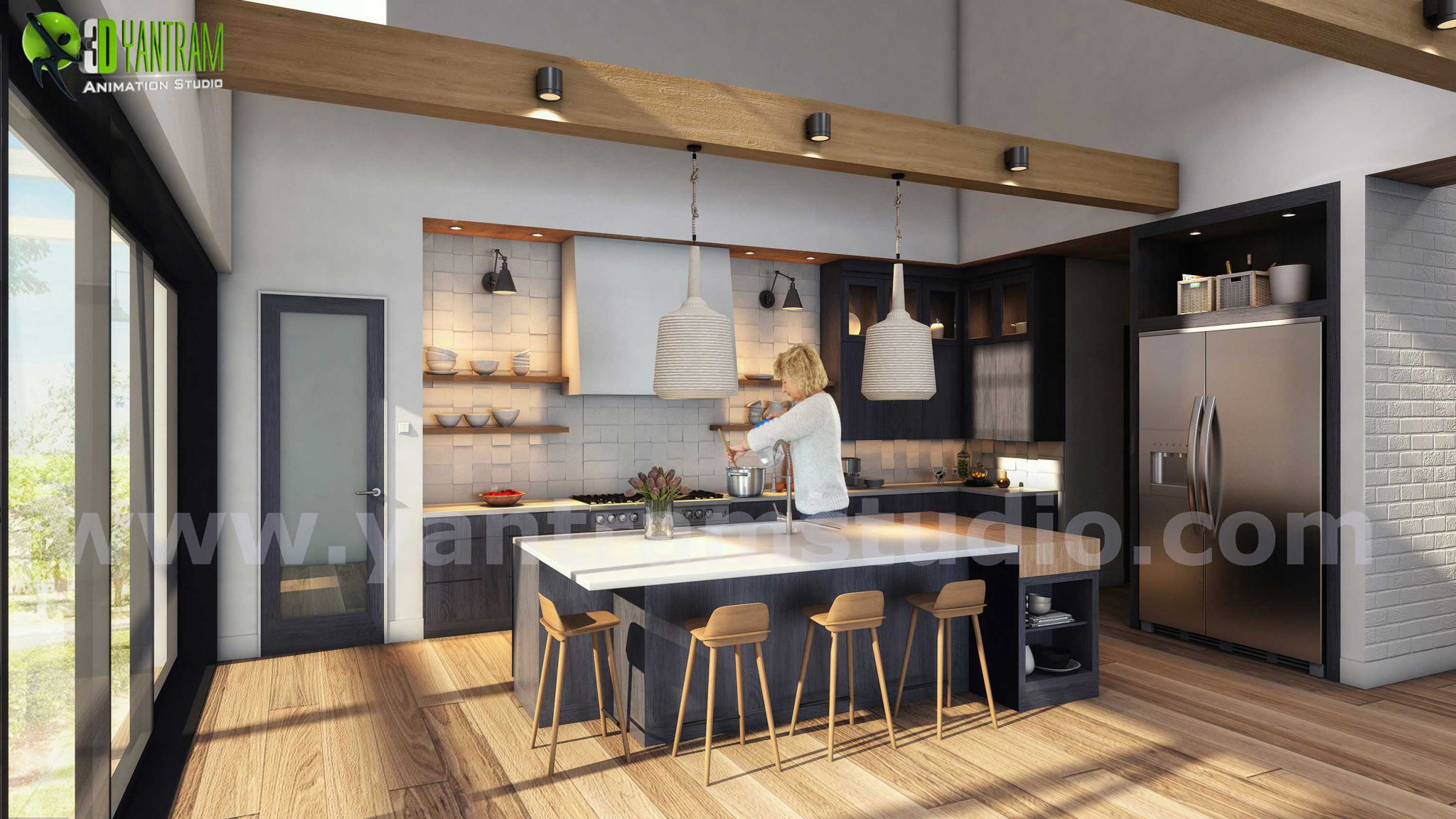 家のインテリアデザインによる3Dキッチン建築のアイデア