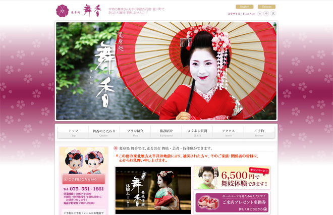 本物の舞妓さんが行きかう「祇園宮川町」で舞妓体験ができる、京都ならではお店のサイト。制作全般を担当。2009年制作。
