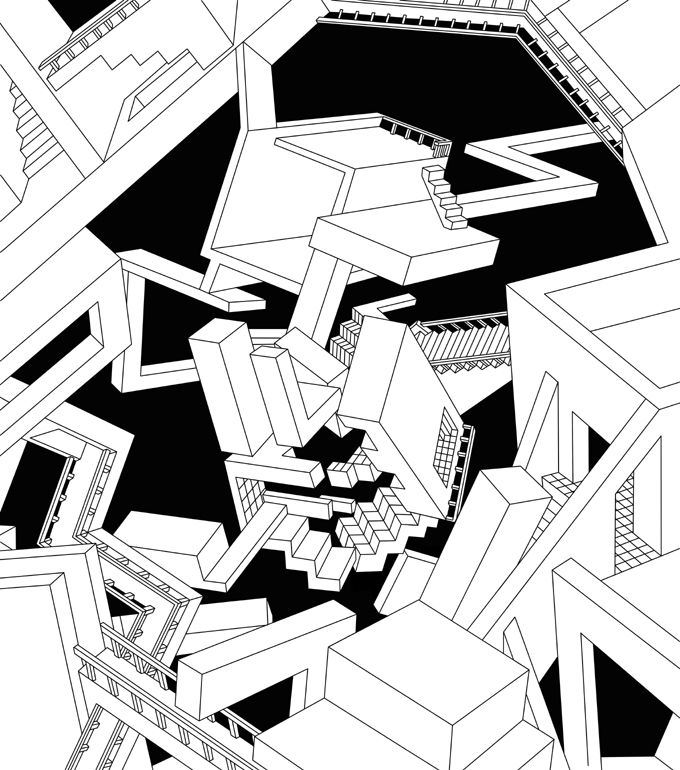 離れて見ると、建物(回廊)がモナリザの顔に見える、トリックアート。大きな壁画になることを想定しています。