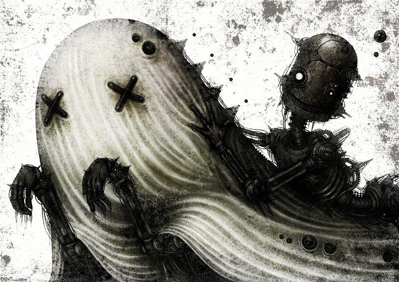 心を持った機械達はシーツを被ってオバケごっこをして楽しく遊んでいます。