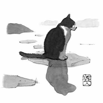 #水墨手法,#水墨画,#イラスト,#墨絵,#和紙,#猫