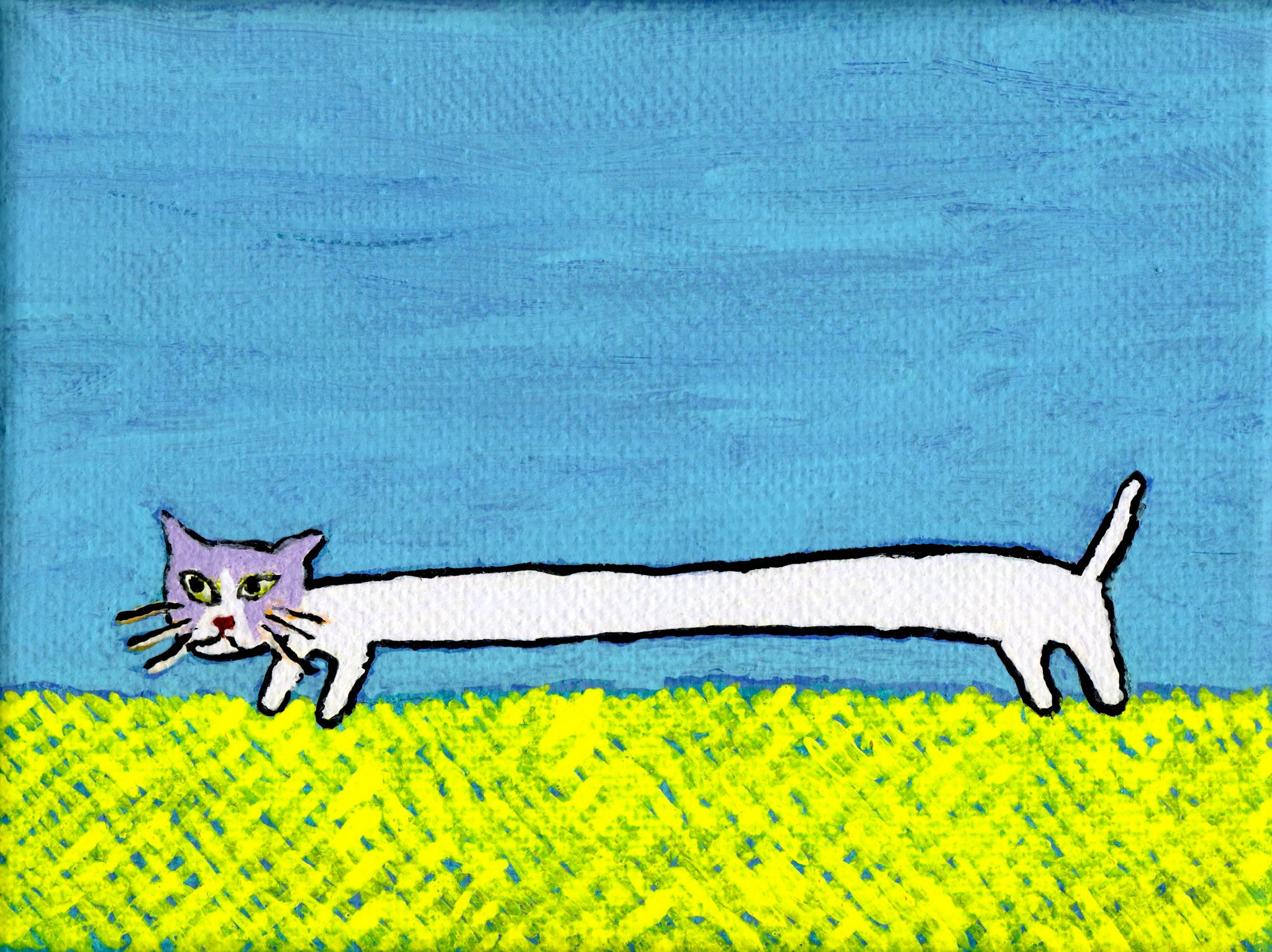 「Long cat」 2018年制作 キャンバス、アクリル絵具 10 x 13cm