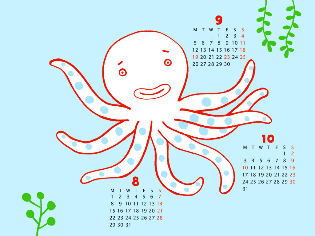 *2011年8月9月10月カレンダーつきイラスト壁紙です(1024×768)*