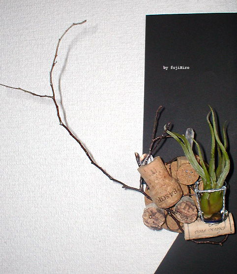 水:丸水晶を木の枝に+とんがった水晶の棒?