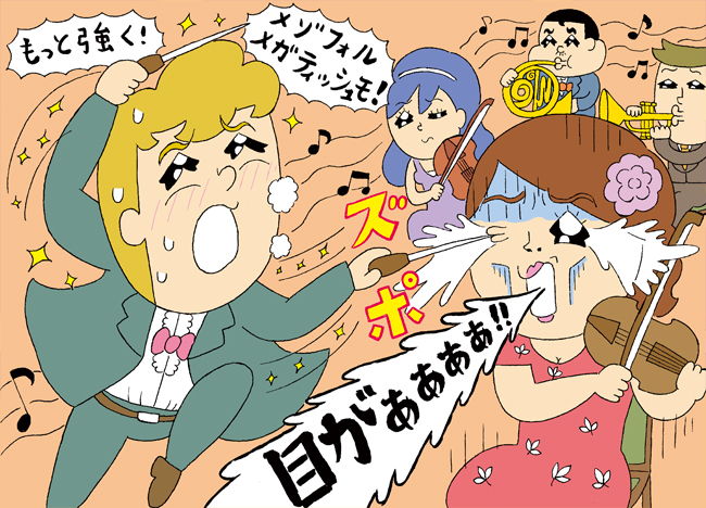 オリジナルイラストです。指揮棒を扱うときは人の目に入らないように気をつけてね!