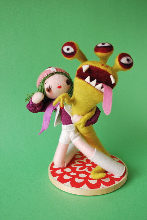 乙女人形 モモレンジャ子。11/5からLAで始まるトリビュートグループ展「Kamen Rider vs Super Sentai」に出品。 http://qpopshop.com/main/?page_id=17