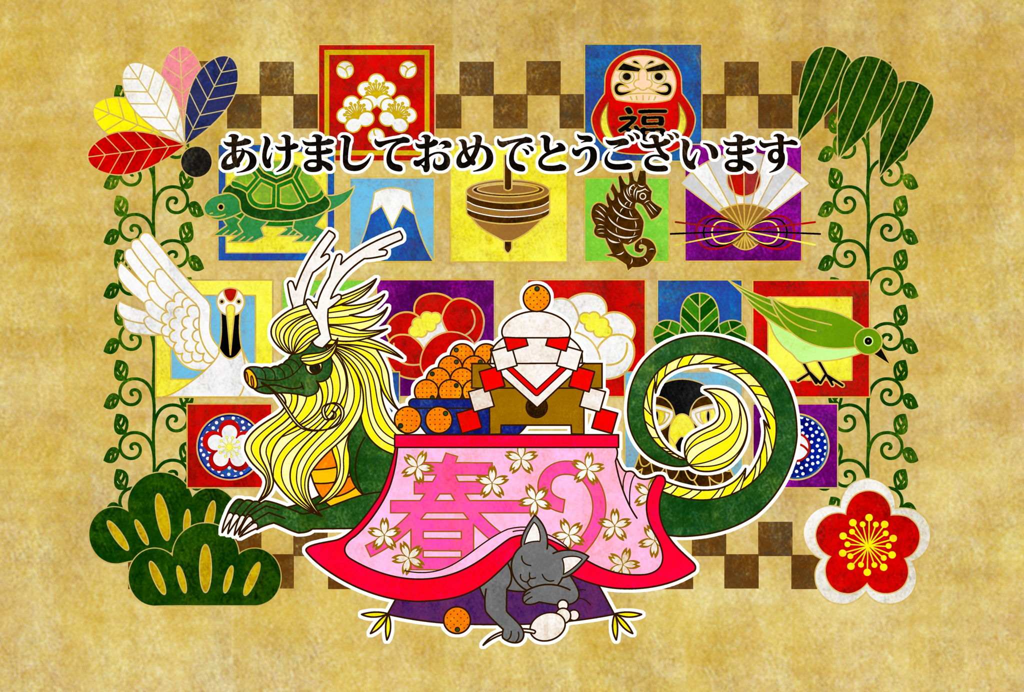 2012年辰年年賀状用フリー素材/あけましておめでとうございます(背景茶色)