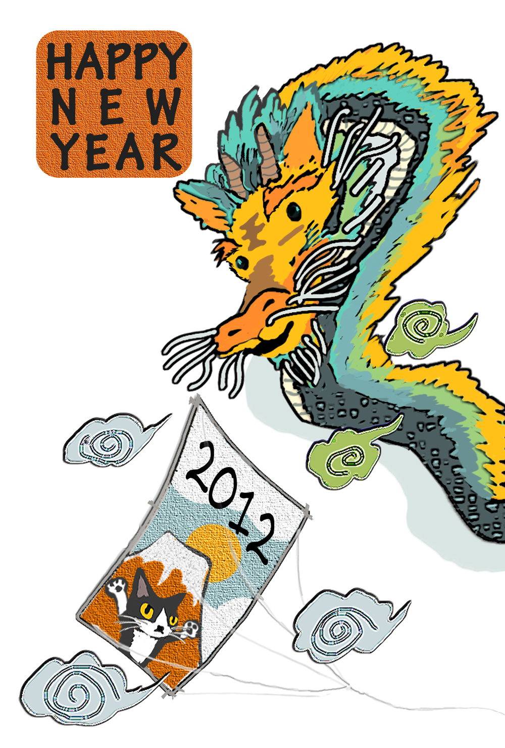 2012mojuni'sNewYearCard Hamakichi Kite ENGLISH
