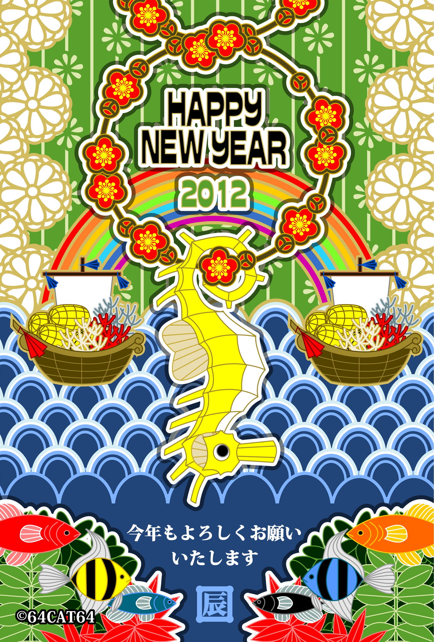 テンプレート,2012,2012年,辰,辰年,年賀状素材,年賀素材,年賀,年賀状,素材,年賀状用,和,和風,縁起物,宝船,イラスト,illustration,デザイン,design,Seahorse,タツノオトシゴ,たつのおとしご,竜の落とし子,竜の落子,HAPPYNEWYEAR