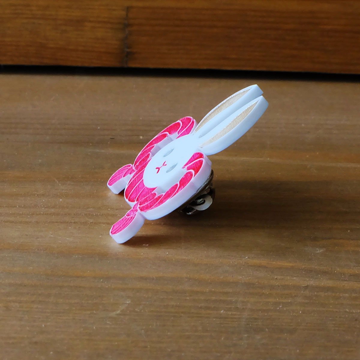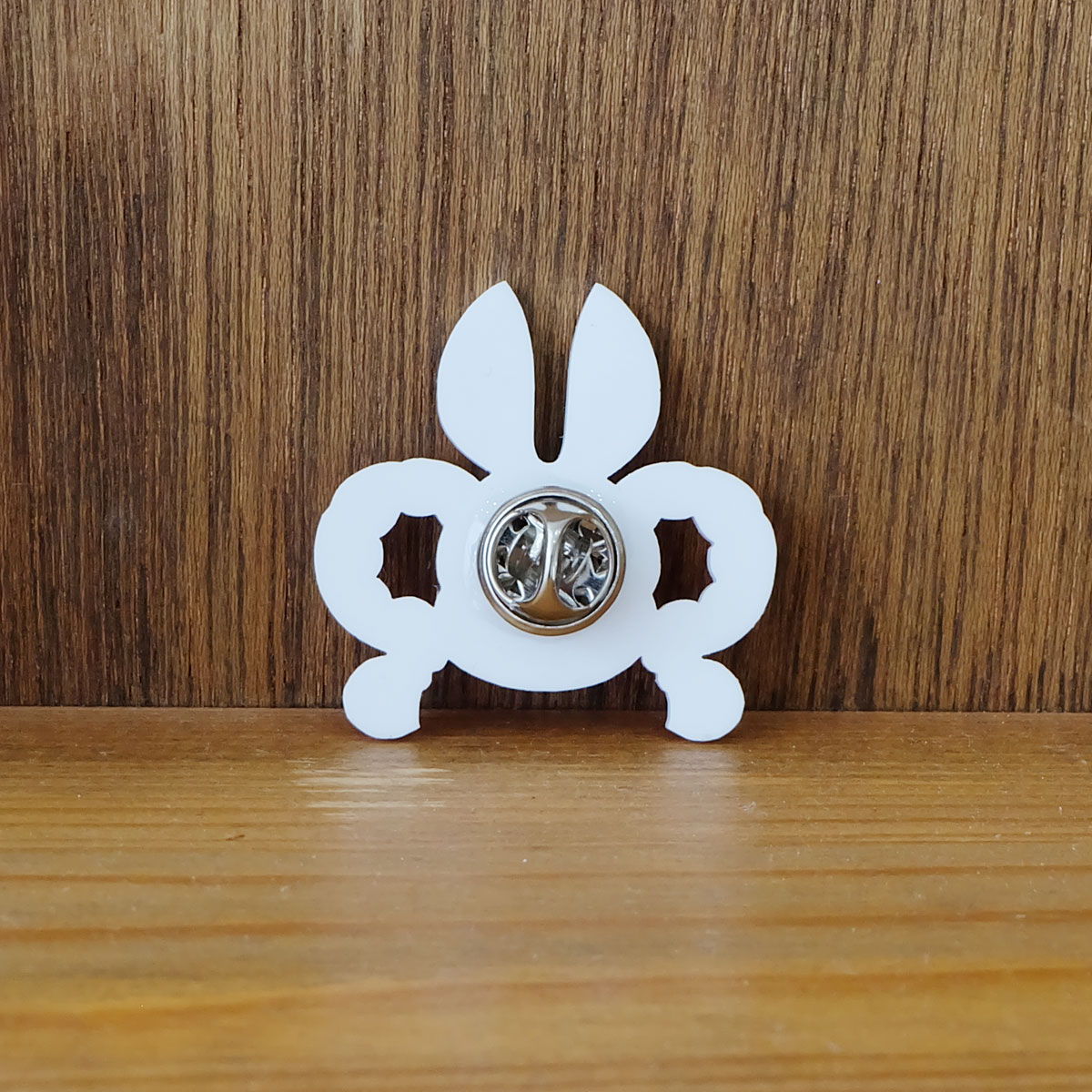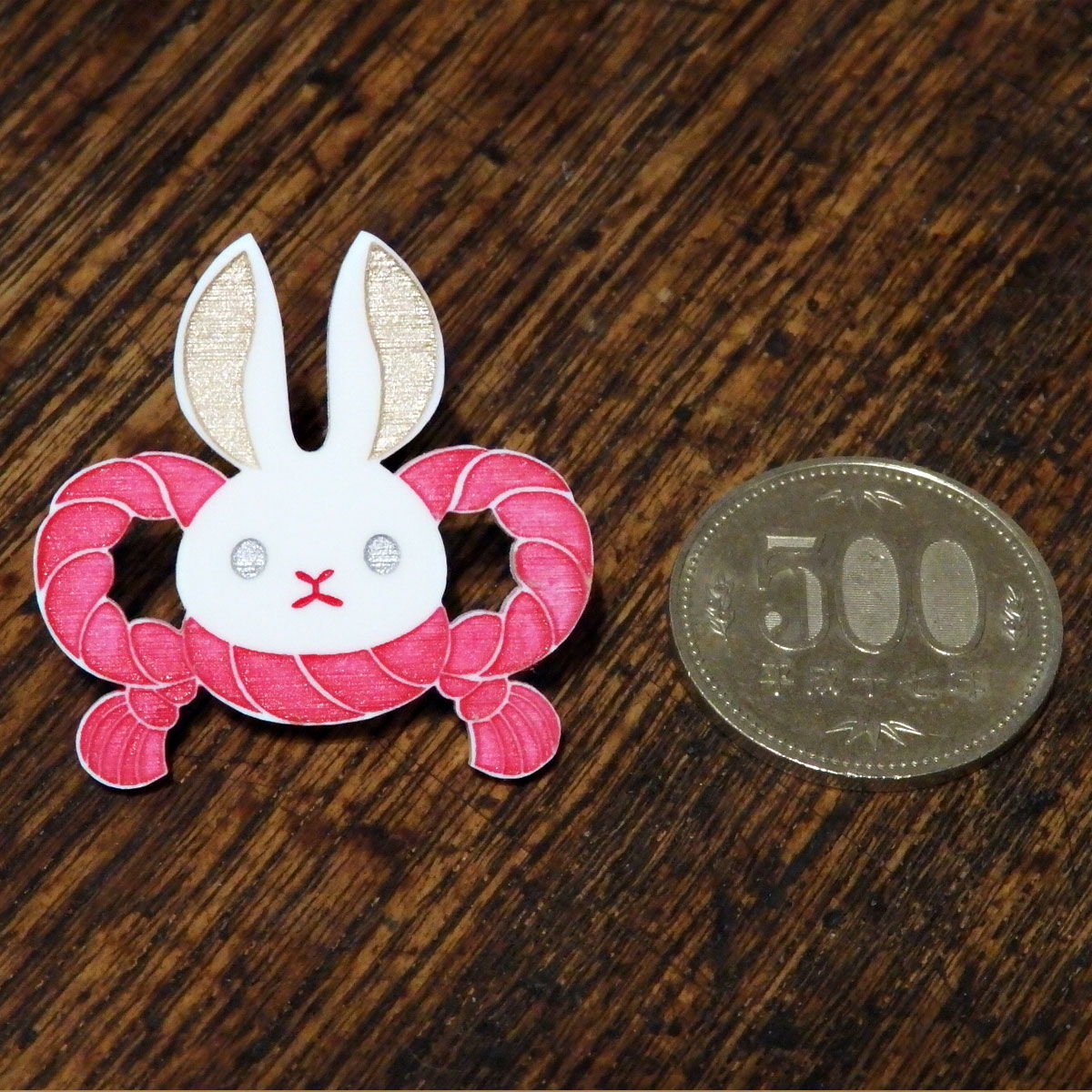しめ縄をしめた和風なうさぎのピンバッジ。