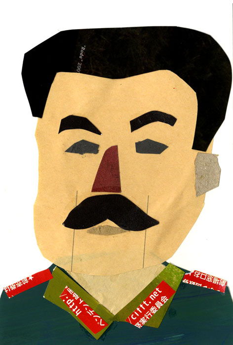 チラシなど切った素材を使って、人物のコラージュを制作しました。今回のテーマは独裁者。スターリン