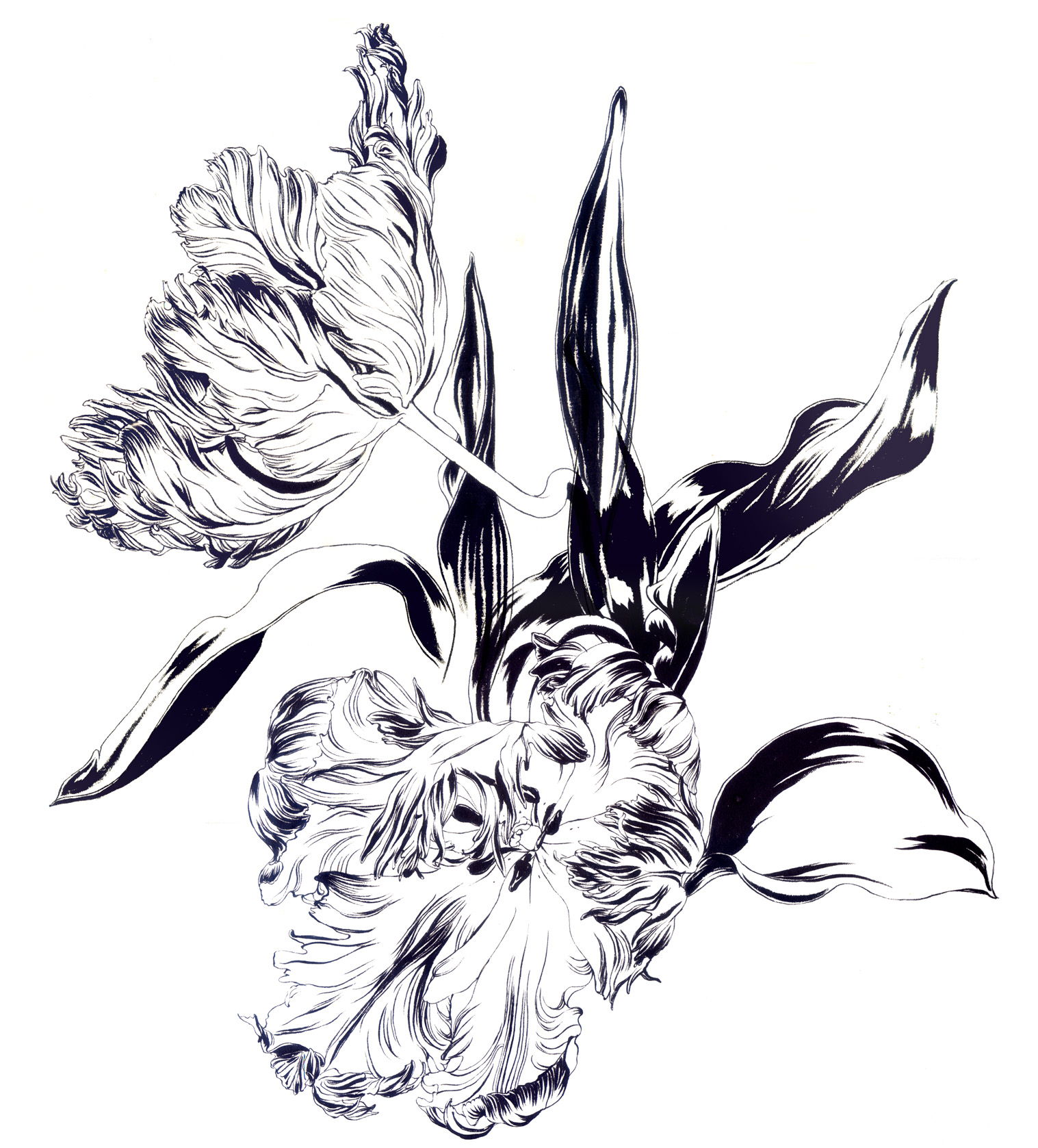 チューリップを描きたくて大きな鉢を大人買いしちゃいました。春の訪れ。葉のうねり。生命力。
