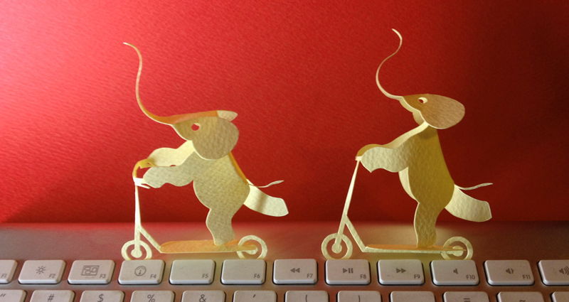 キックスケートに乗って楽しそうなゾウさんをモビールにしたいと考えています。