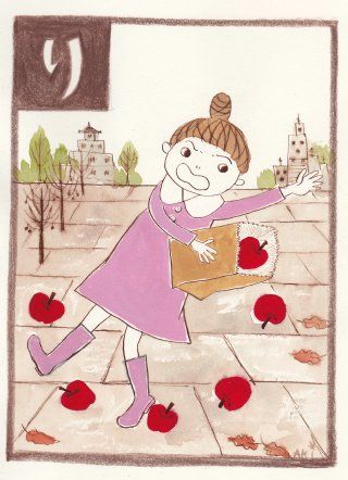 いやなことしりとり。その頃、買い物に出た方は、りんごでころんでいた。