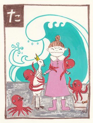 海辺に行くと、たこに、からみつかれた〜!