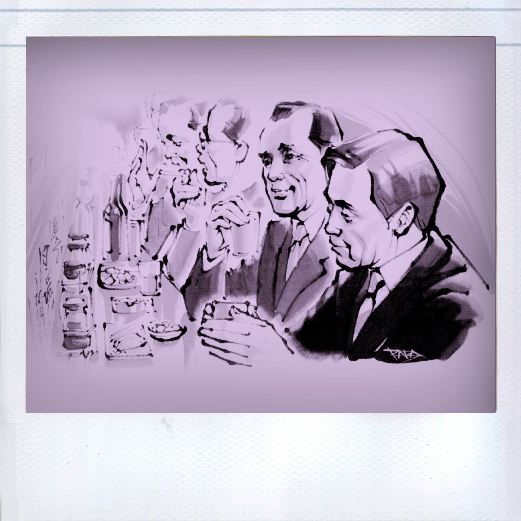 会社法務A2Z誌の連載のための挿絵。旧交を暖めるベテラン裁判官二人。