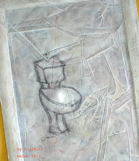 額装:半紙を貼ってアクリルクレヨン等で着色最後に光沢有ニス