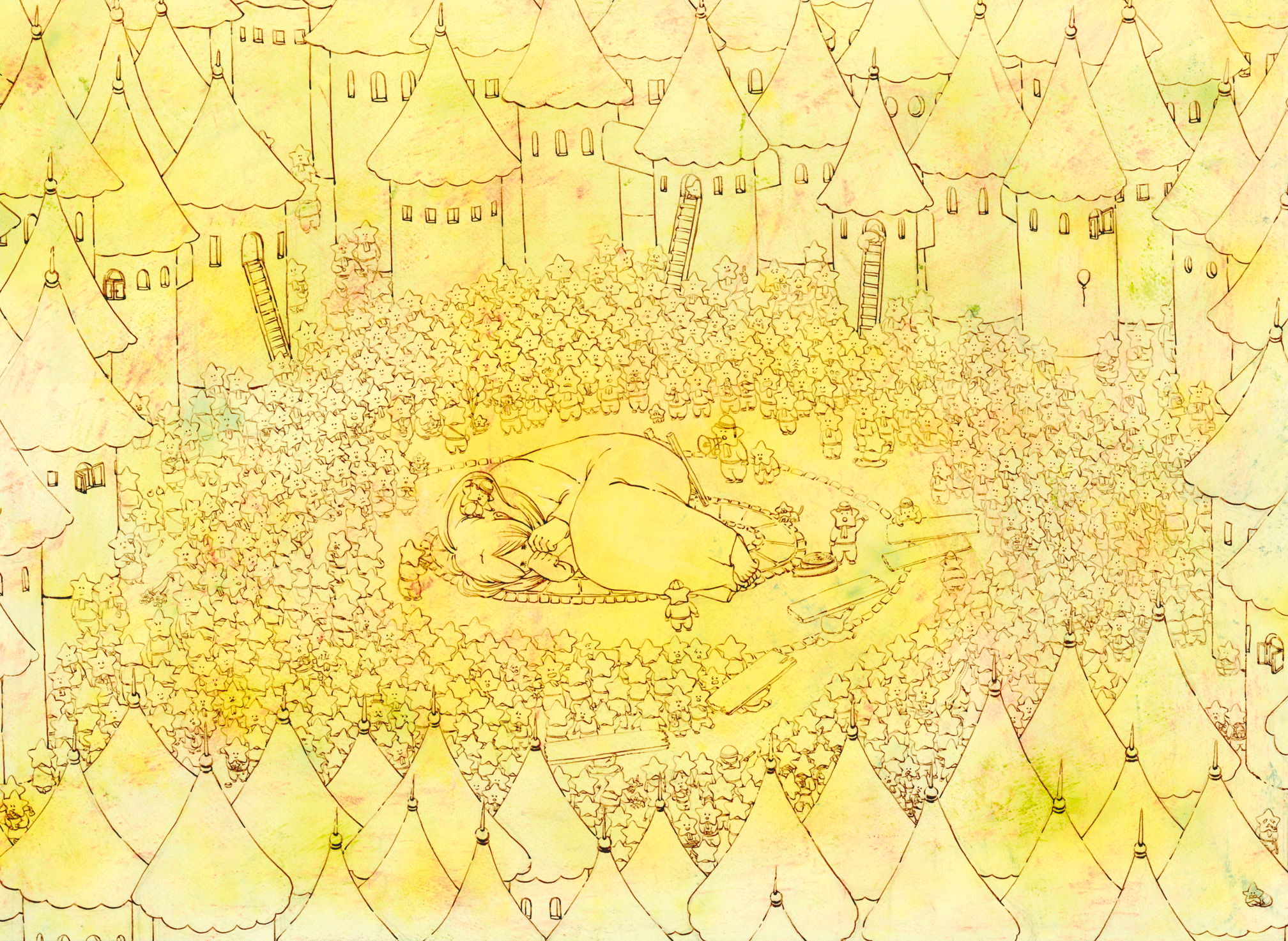 2009年/カラーインク、パステル、ジェルメディウム、つけペン/B2サイズ/制作時間 20h