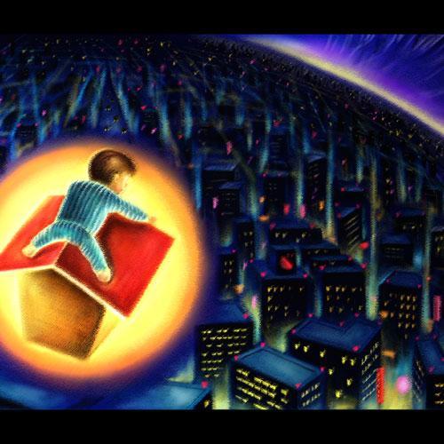 数年前に自主製作した絵本「まよなかのいぬごやレース」のカットです。