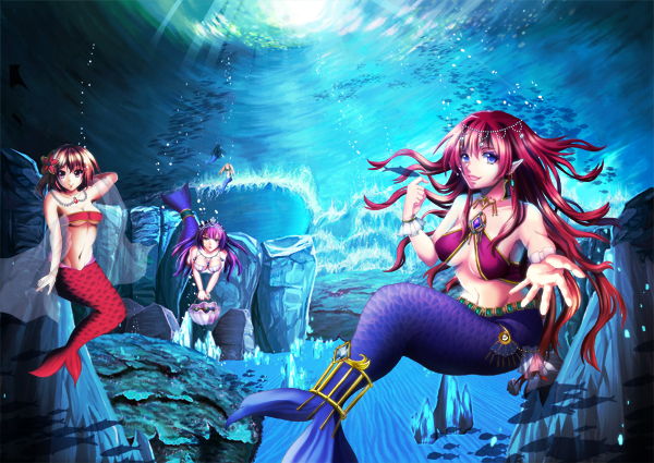 夏祭りの、楽しいけれど、少し怪しい雰囲気のイラストを目指しました。赤毛の男の子は実は狐で、人間のお祭りを楽しむために人間に化けている、という設定です。