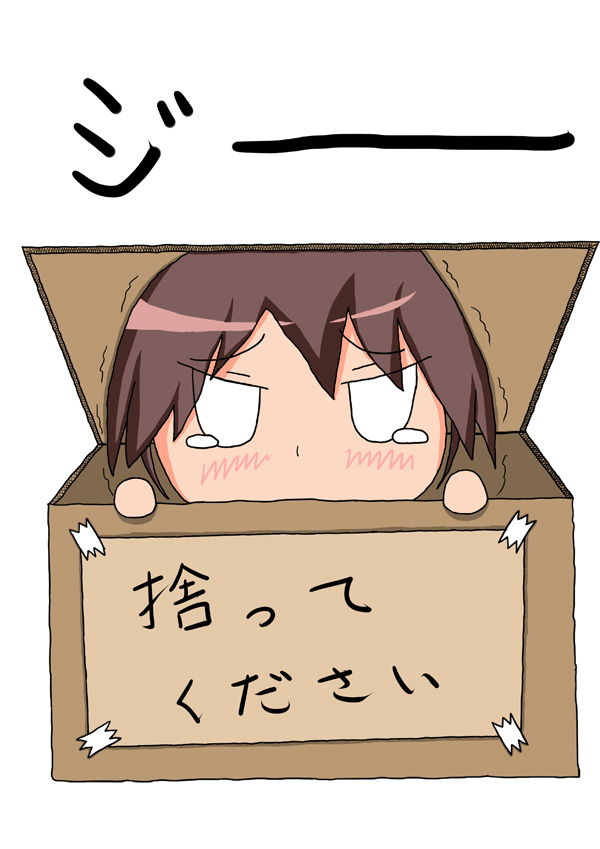 ダンボールに入ってガタガタ震えながら、こちらを拾って欲しそうにジーと見ているちびキャラを描きました。