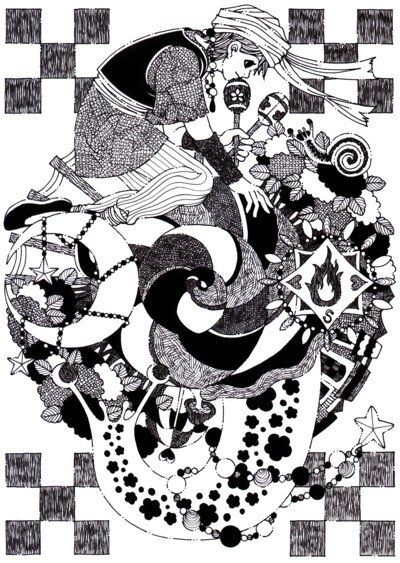 illustration pen drawing monochrome drawn boy snail moon maracas