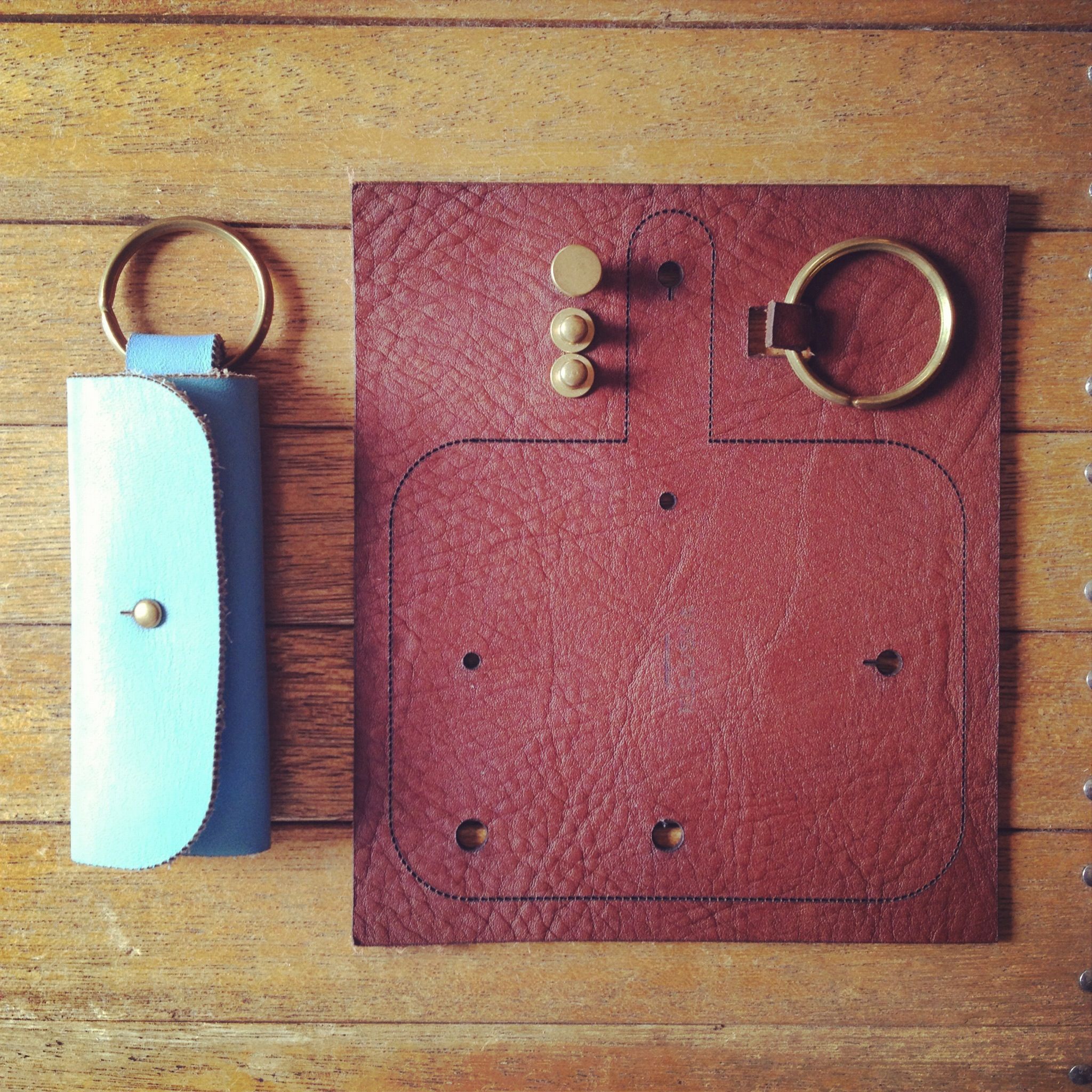 2.5mm厚のレザーをカットして、真鍮のリング、ねじ、ギボシ×2で、キーケースを作ります。