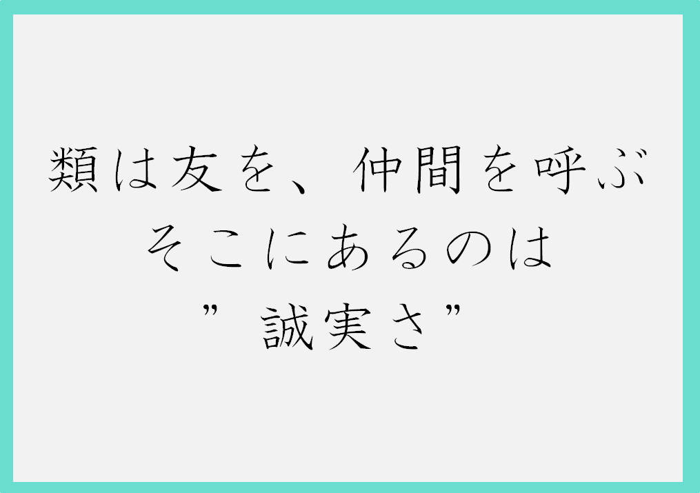 類は友を、仲間を呼ぶ そこにあるのは”誠実さ”