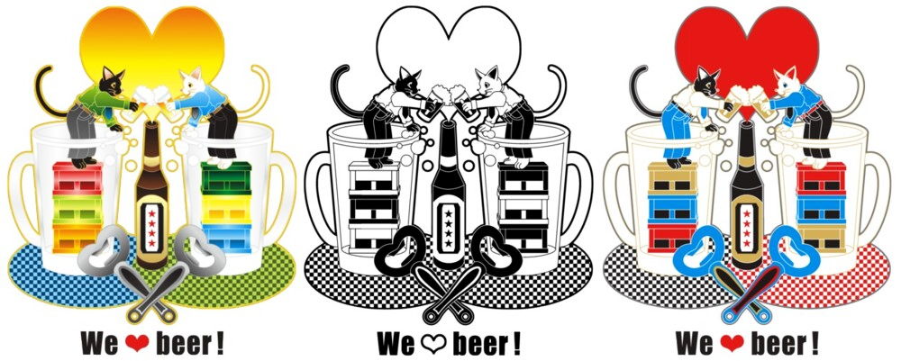CorelDraw イラスト 猫 ビール ハート 乾杯 レトロ カラフル モノクロ デザイン