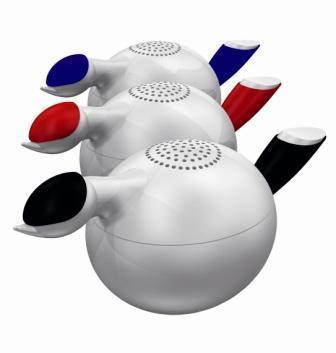 The unique design of this mortar and pestle is produced in slip cast stoneware with silicon grips. It is intended to be a focal point on any kitchen work surface. It incorporates the use of coloured silicone to form safe grips on the stoneware components whilst bringing colour to an otherwise plain object making the product an eye catching feature of the kitchen when not in use. It adapts to fulfil its primary function of grinding ingredients but the lid reverses to fit securely over the mortar bowl transforming to a strainer allowing liquids such as lemon juice to be added when making pastes.