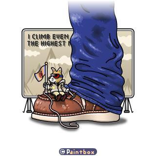 どんなところでも登ってしまう犬の登山家という設定で描いたものです。タバコか何かのポスター風になってしまいました。