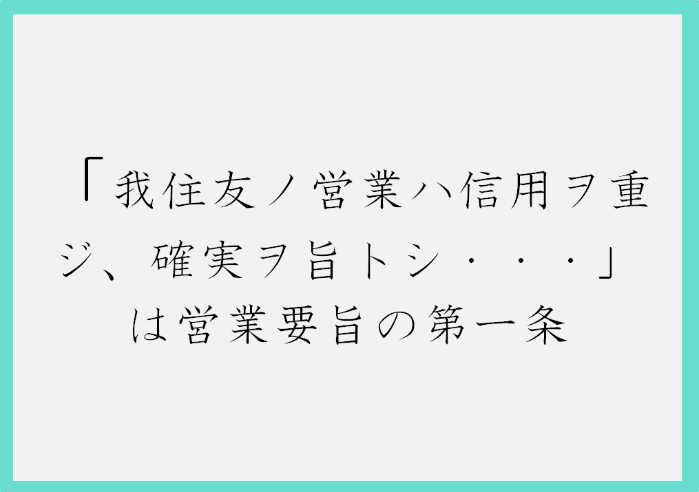「我住友ノ営業ハ信用ヲ重ジ、確実ヲ旨トシ・・・」は営業要旨の第一条