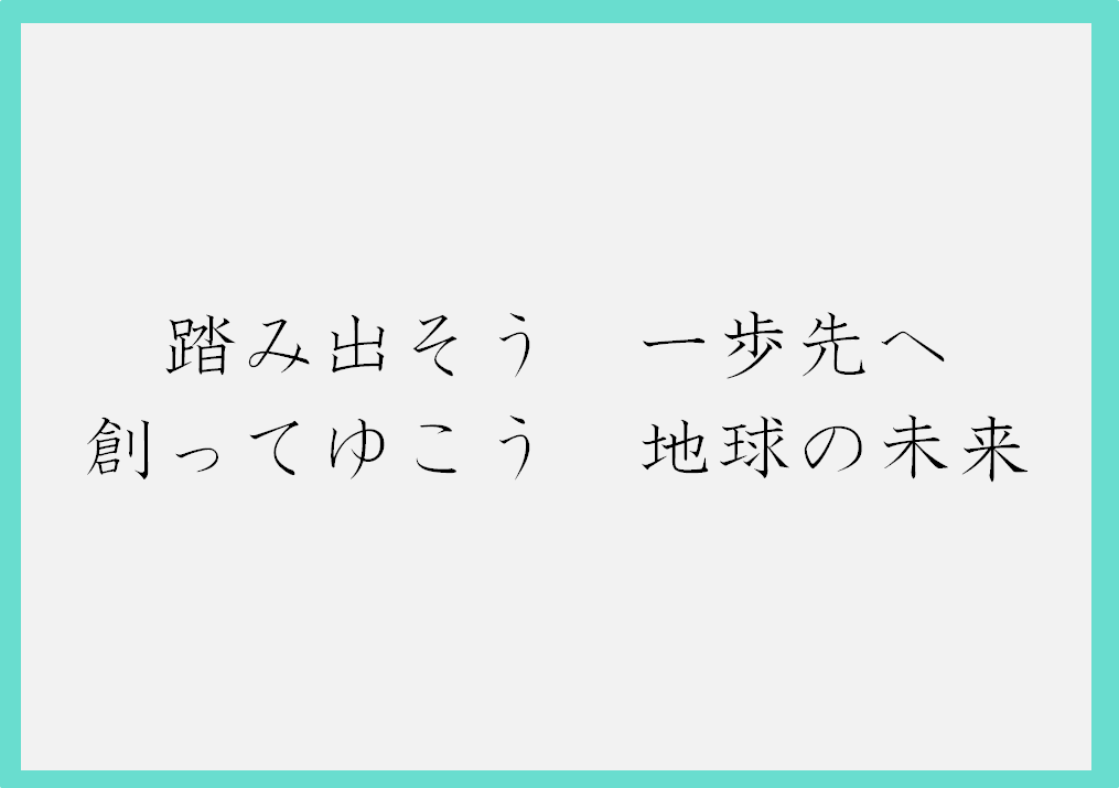 "踏み出そう 一歩先へ 創ってゆこう 地球の未来"