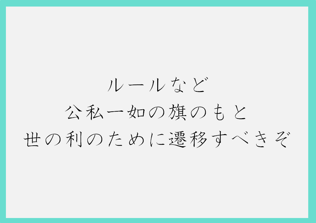ルールなど 公私一如の旗のもと 世の利のために遷移すべきぞ