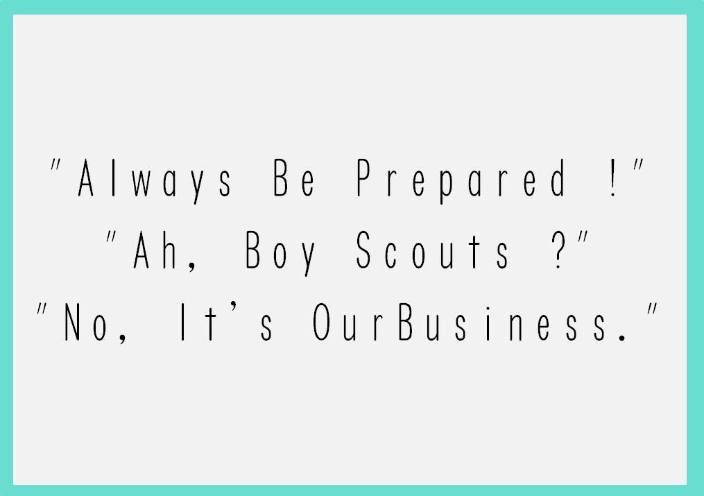 "Always Be Prepared !" "Ah, Boy Scouts ?" "No, It's Our Business."