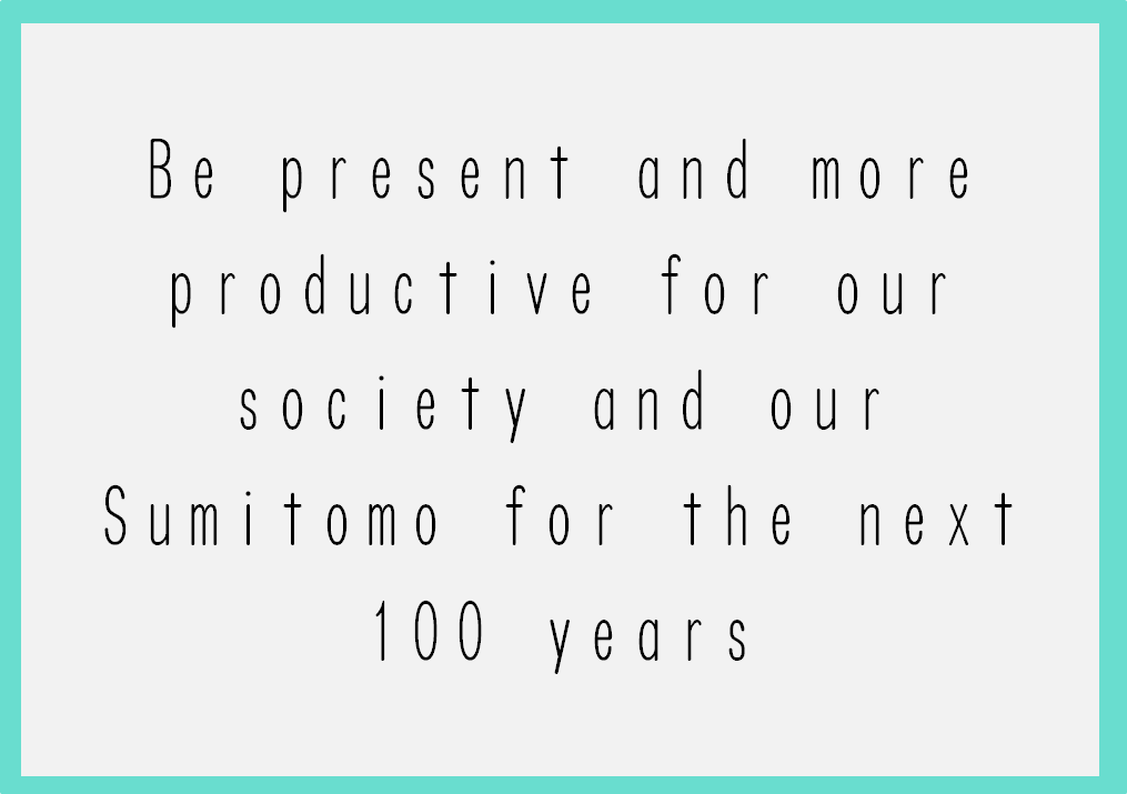 Be present and more productive for our society and our Sumitomo for the next 100 years